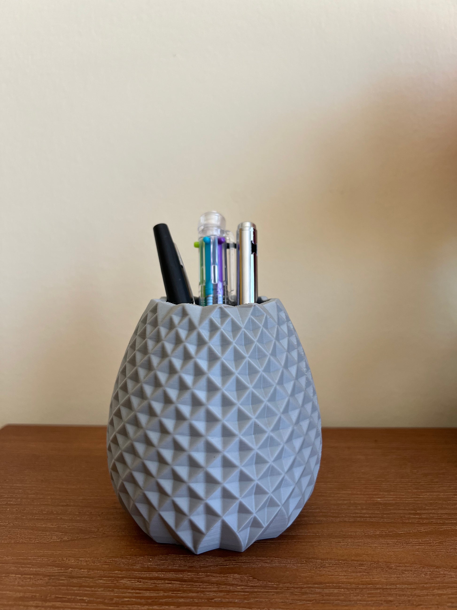 Whether you are looking for a way to add a touch of personality to your desk or simply need a place to store your pens, this 3D printed pen stand is the perfect solution.